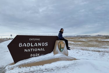 And I want to show him everything, but mostly just my soul. Such a big part of it lies in the West, in wide open plains and rolling hills and the calls of eagles whirling overhead in the big sky. So when my winter break hit, we were off to the Badlands in my old orange car, praying it would make the nine hour trip.